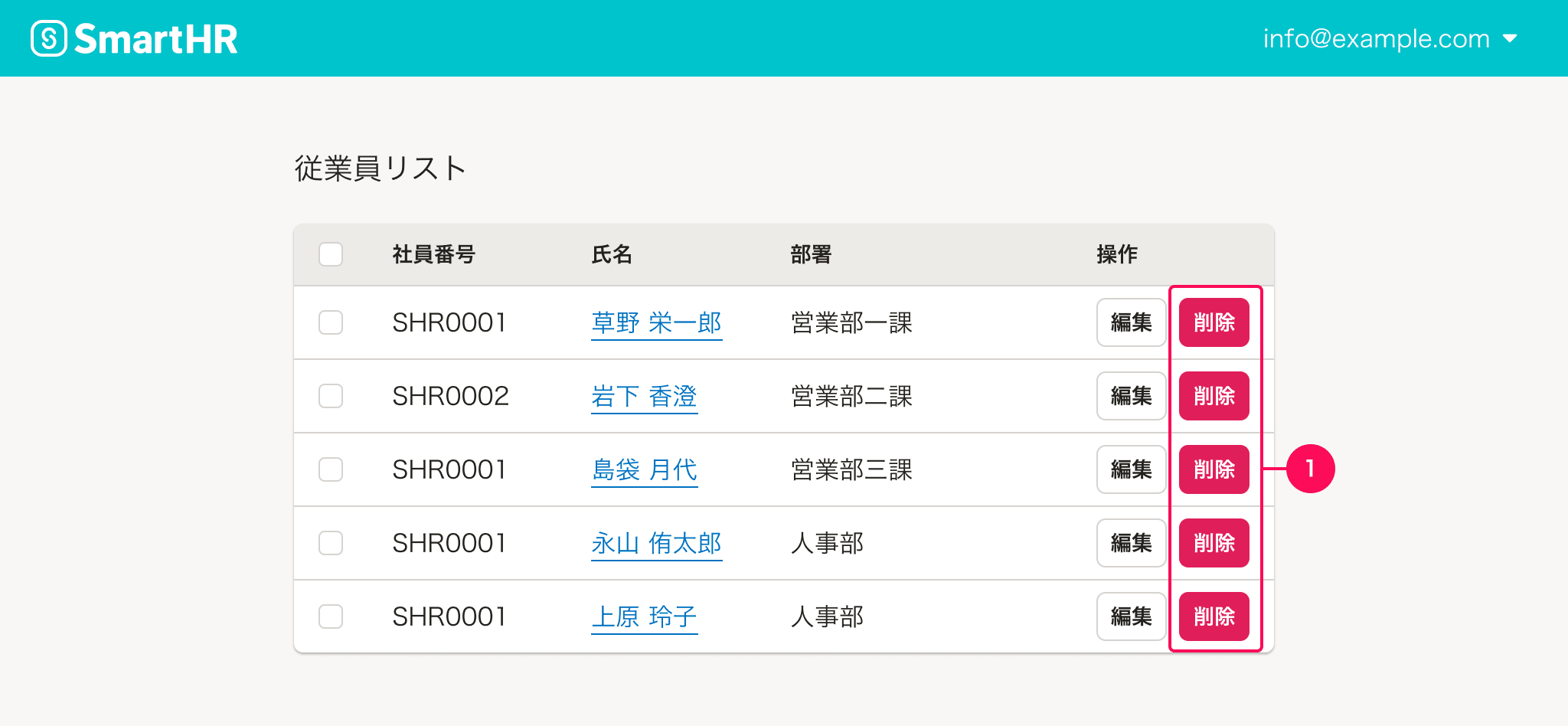 ただし、一覧の操作セルなど、ファーストビューですぐに触れる領域への「取り返しのつかない操作ボタン」の設置や、Dangerボタンを連続して設置することは通常推奨しません。