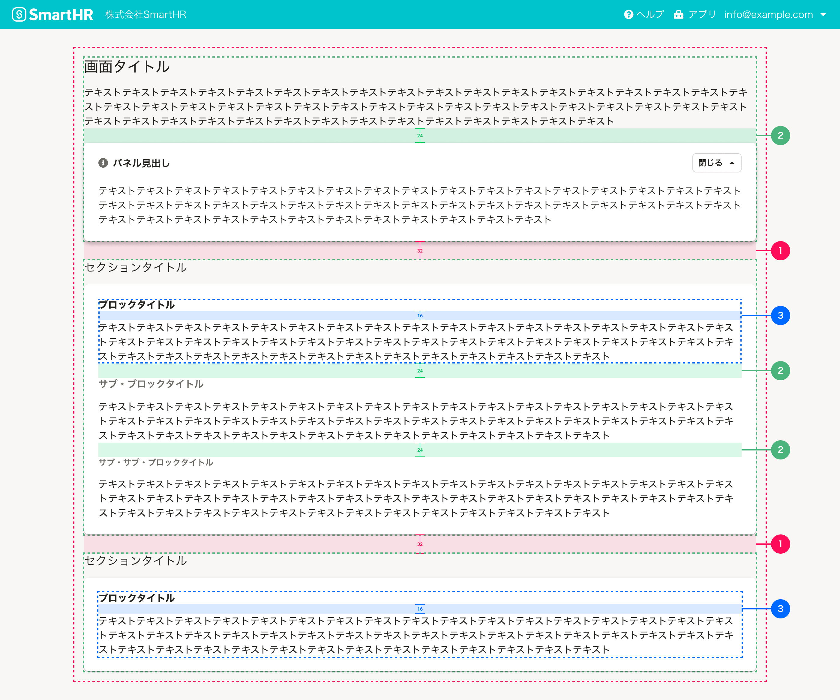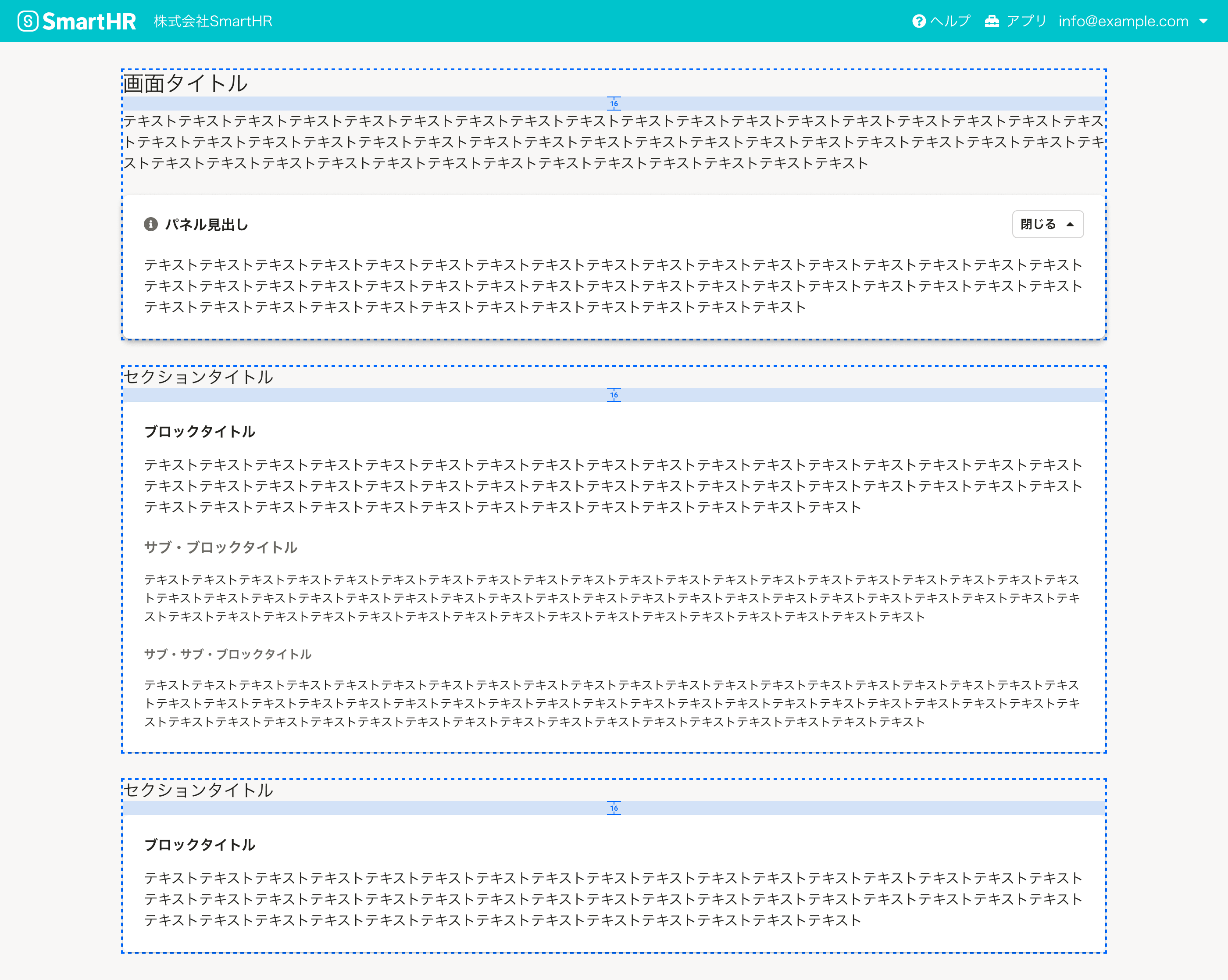 UI設計において開発者は適切な余白について意識することが重要ですが、SmartHR UIのコンポーネントの中には、あらかじめ適切な余白が設定されており、余白の選定を意識することなく利用できるものがあります。Layoutコンポーネントを使う場合や、コンポーネントを組み合わせて画面に配置する場合に、下記を参考に適切な余白を設定してください。
